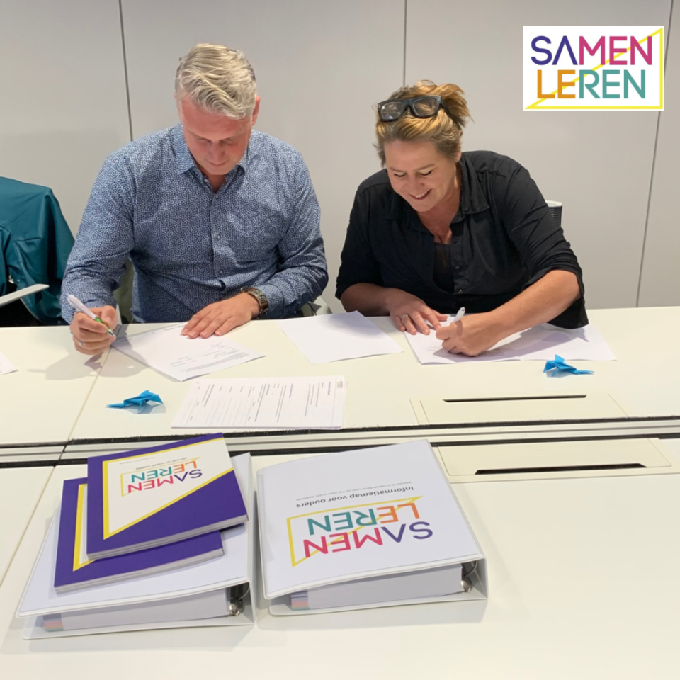 Op donderdag 22 september is het overdrachtscontract tussen ontwikkelingsbureau Frontlijn van Gemeente Rotterdam en Stichting Aanzet getekend. Stichting Aanzet is nu officieel volledig eigenaar van het project Samen Leren! Samen met de landelijke partners JES Rijnland, BS Gouda, Indigo en SOL Rotterdam voert stichting Aanzet Samen Leren uit. We gaan met elkaar voor nog meer bereik, kwaliteitsbewaking en doorontwikkeling!